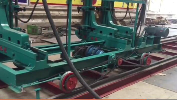 木工跑車也稱為木工帶鋸機跑車,他是由軌道,四個主動行走輪,跑車支架,驅(qū)動電機,木材固定支架組成。本機床由帶鋸主機、跑車、地下拖動裝置和紅外線數(shù)顯進尺裝置等主要部份組成。固定支架可分為氣動固定和機械固定,縱向行走裝置。電力輸送裝置,可分為電纜輸電和坦克履帶型輸電,配電柜組成。紅外線數(shù)顯進尺裝置是近幾年才選配的裝置,他具有分尺準確,自動化程度高,一次輸入,無須再次調(diào)整的好處。整個木工帶鋸跑車操作的流程就是:先用叉車把巨大的原木運輸?shù)脚苘嚿厦妫阉惭b固定好。